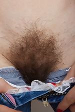 Simona stands in her favorite denim clothes and is in a lustful mood. She strips to her underwear and tugs on her panties which shows her hairy pussy. Midway through, we see her hairy twat in its glory.
